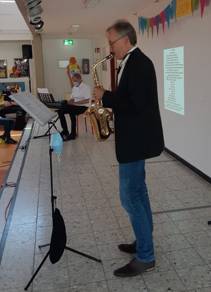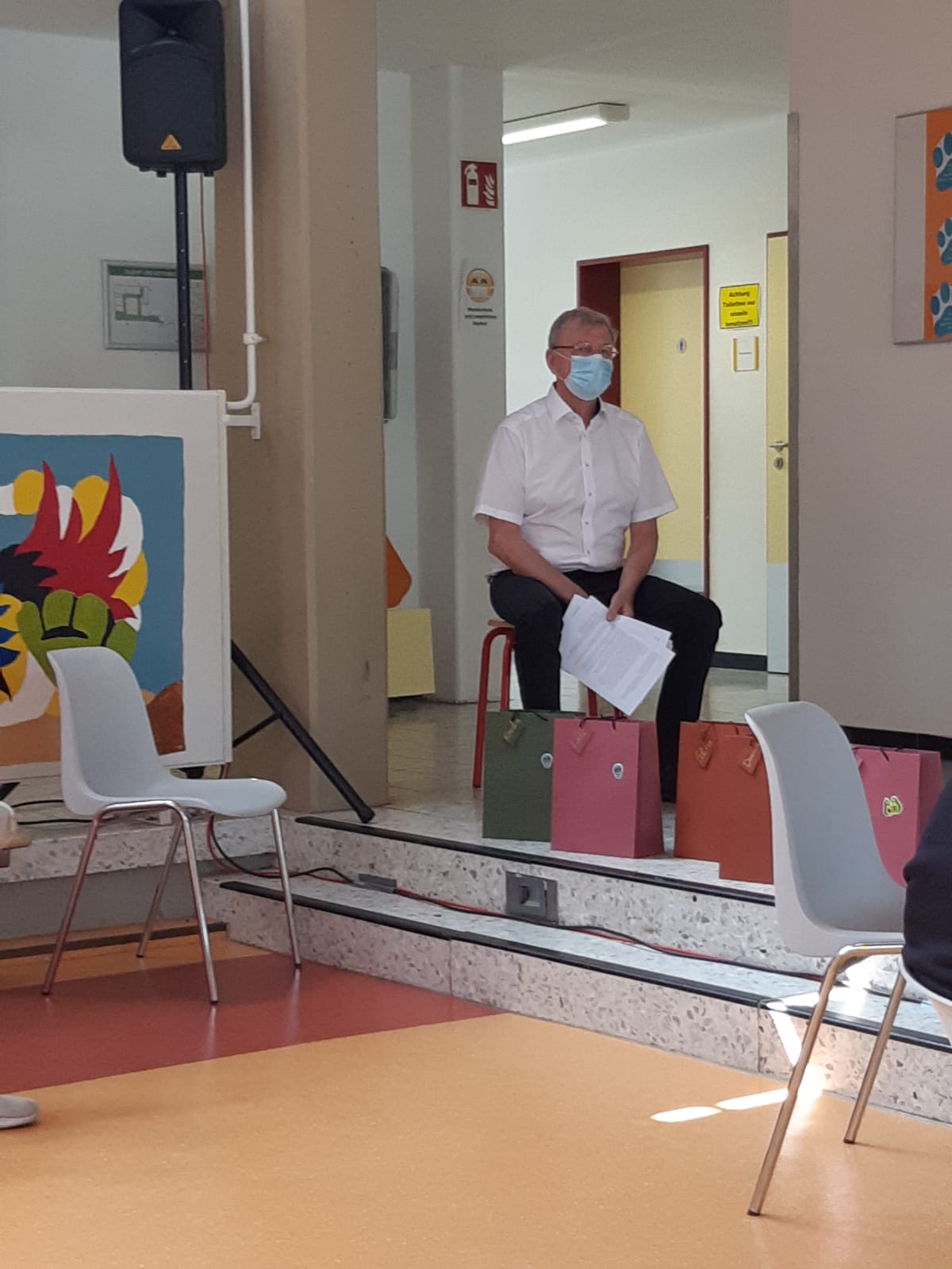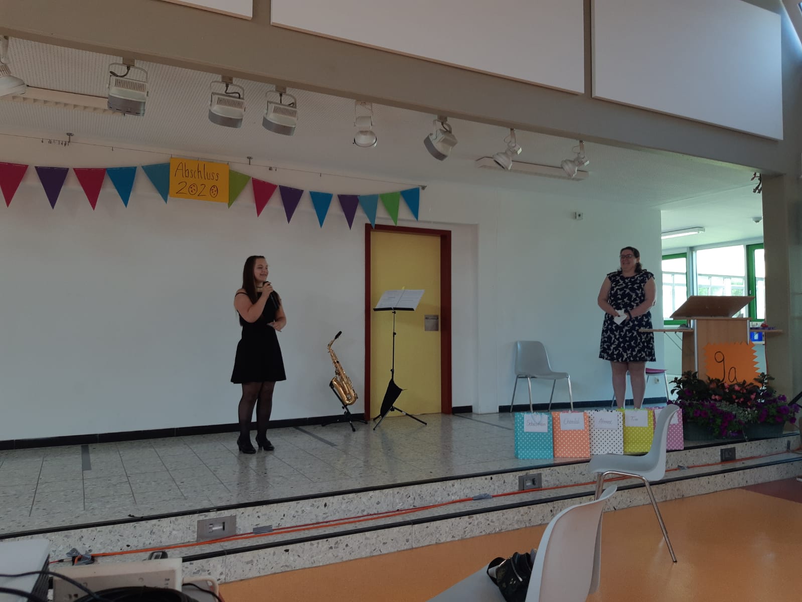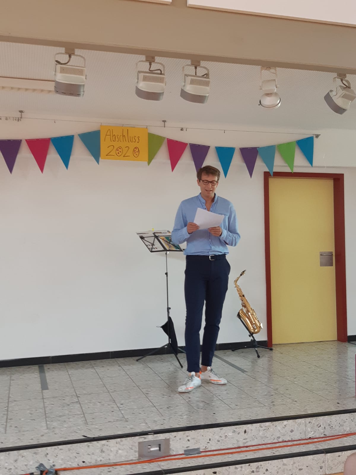 Neben der offiziellen Zeugnisübergabe in der Aula, die pro Klasse abgehalten wurde, gab es ein kleines Rahmenprogramm. Herr Horn und Herr Proest haben die "Europa-Hymne" musikalisch dargestellt, die Schulleitung eine Rede gehalten und die Klassenlehrerinnen und Klassenlehrer Herr Schröder, Frau Bartz, Frau Groth und Herr Proest persönliche Worte an die Schülerinnen und Schüler gerichtet sowie rückblickende Foto-Präsentationen gezeigt. Aus den Abschlussjahrgängen richteten sich Lucy aus Klasse 9 und Tom aus Klasse 10 an die Zuhörenden.