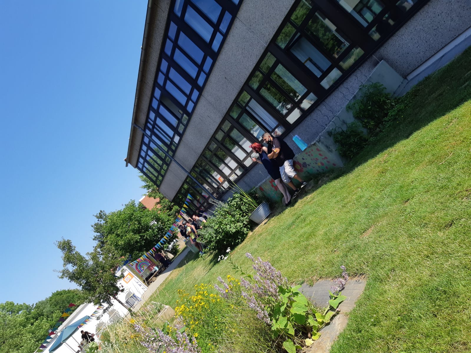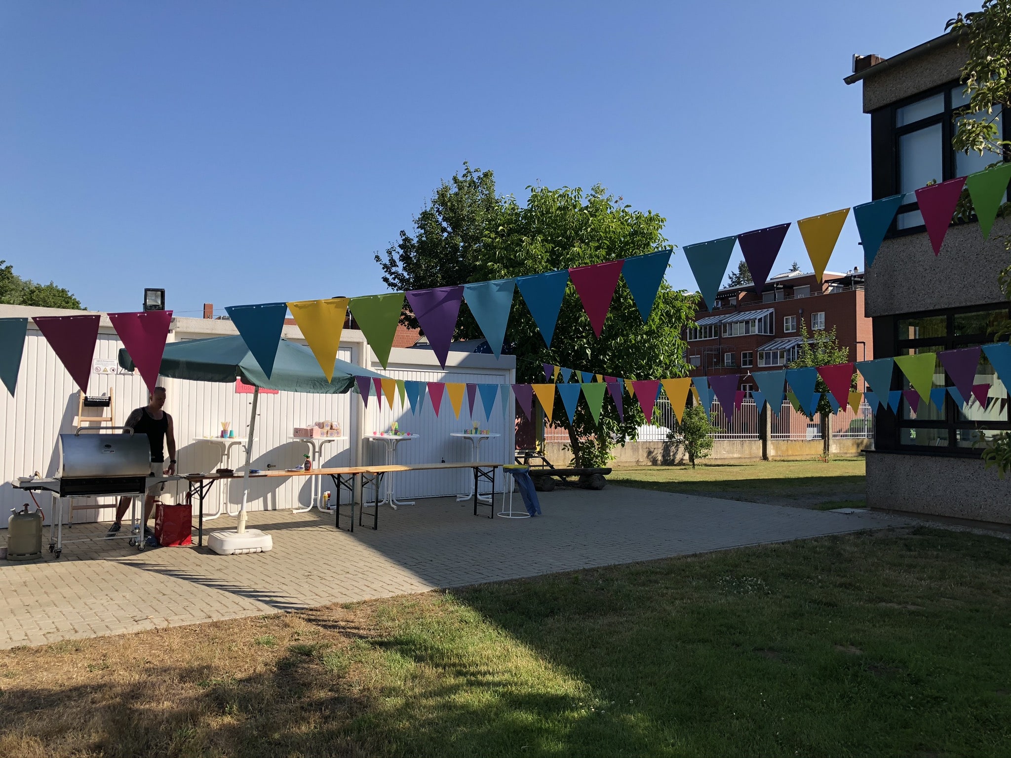 Im Anschluss fanden sich alle Gäste im sommerlich geschmückten Schulgarten ein. Hier wurde gemeinsam gelacht, gequatscht, es wurden Fotos gemacht und die ein oder andere Bratwurst verspeist, die von den Hausmeistern gegrillt wurde - eine rundum gelungene Feier.