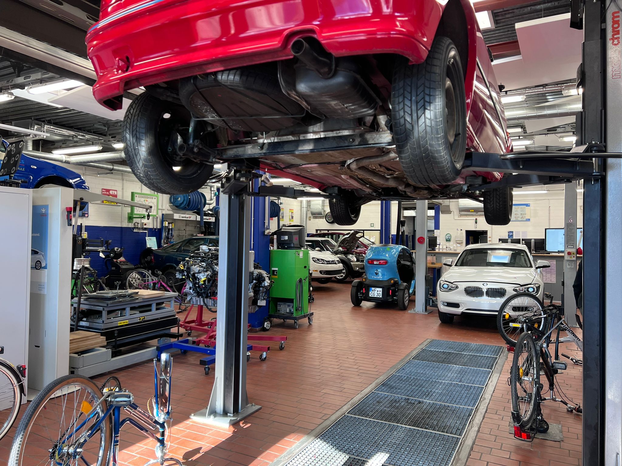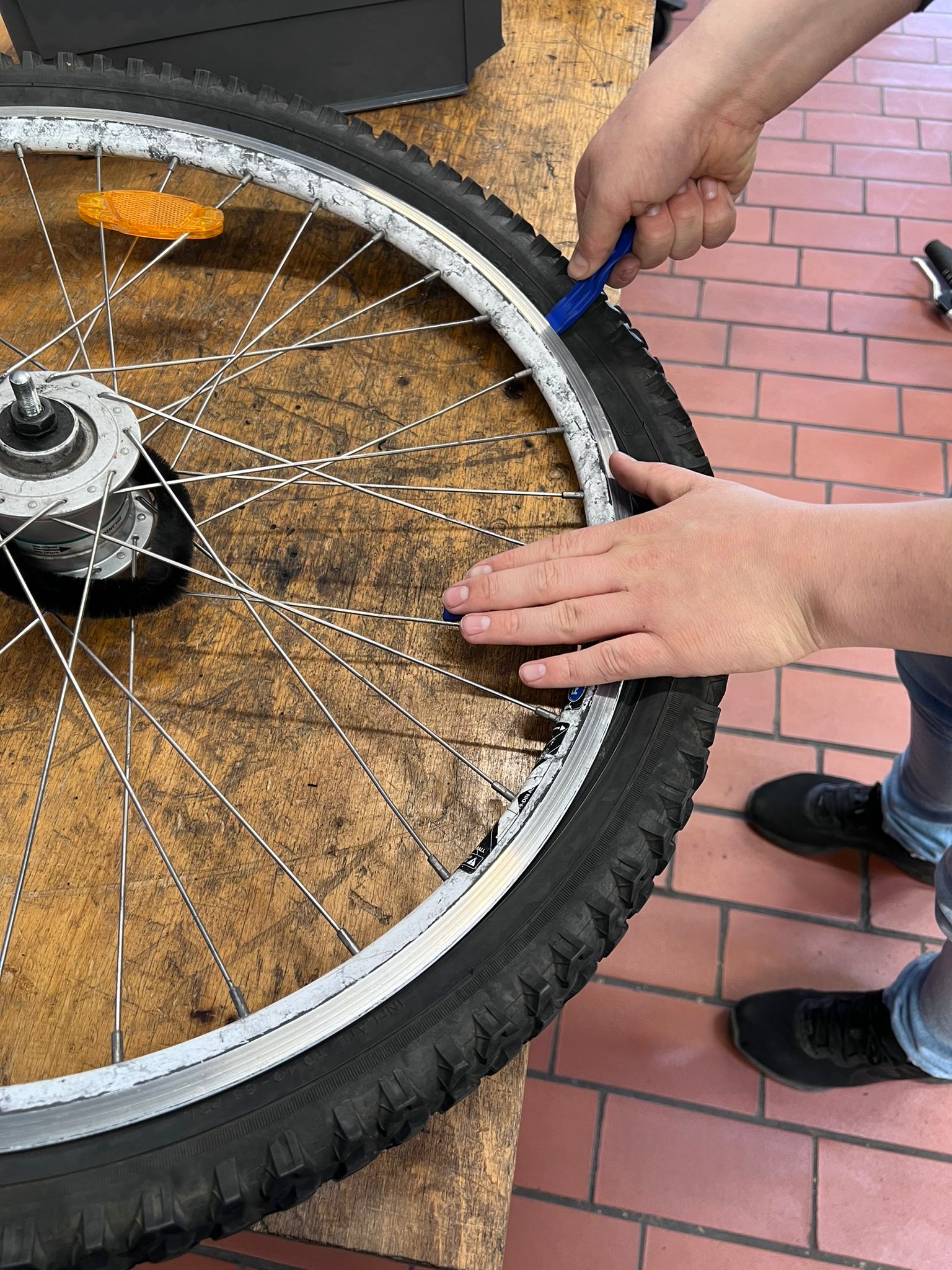 Die 8. Klassen konnten an der Berufsschule auch in den Bereich Fahrzeugtechnik einen kleinen Einblick erhalten. Reifen wurden gewechselt und repariert. 🔧 Dazu wurden Fachausdrücke gelernt. Am Ende waren alle Reifen wieder an den Fahrrädern. 🚲 🚗